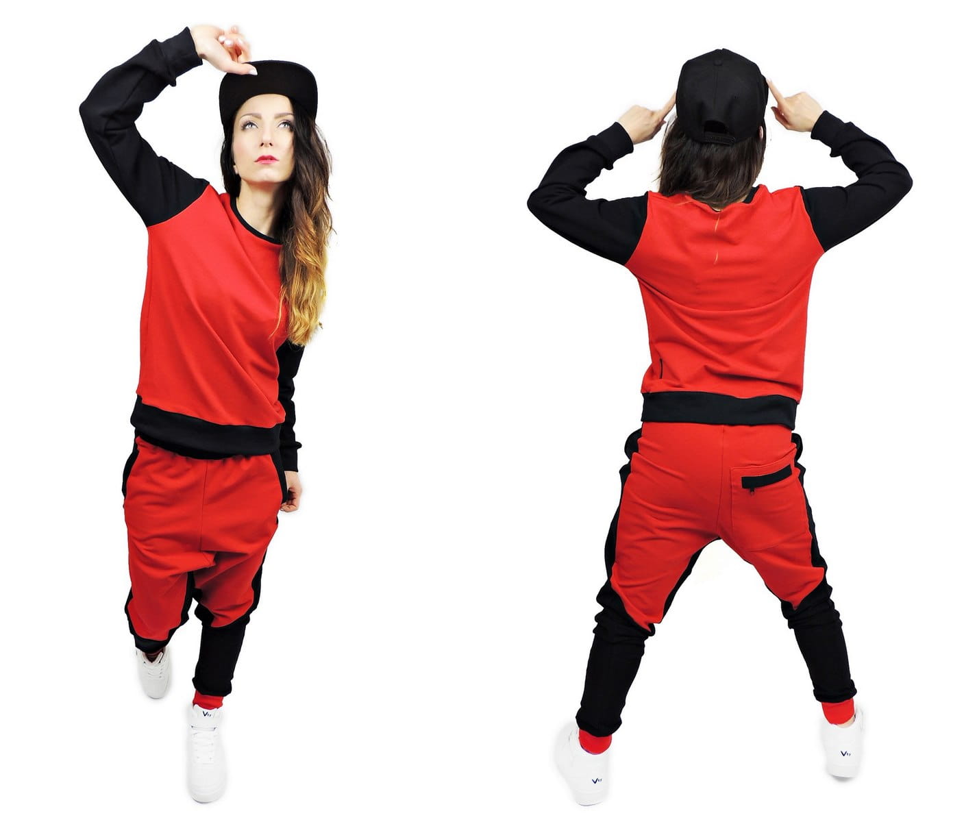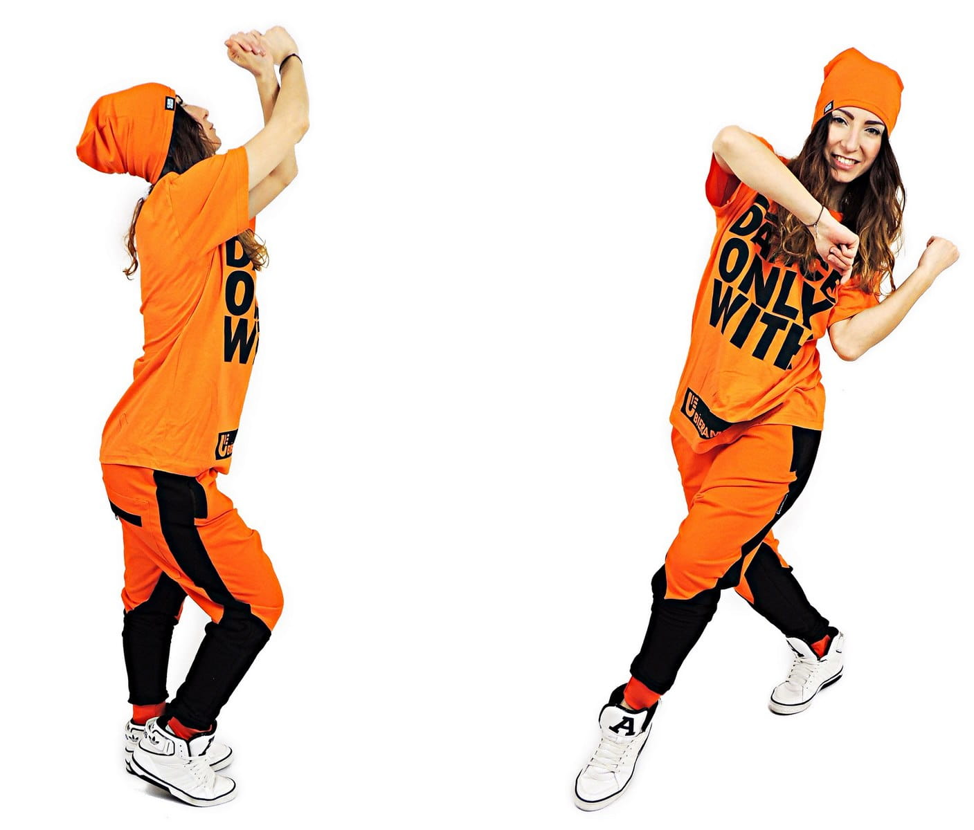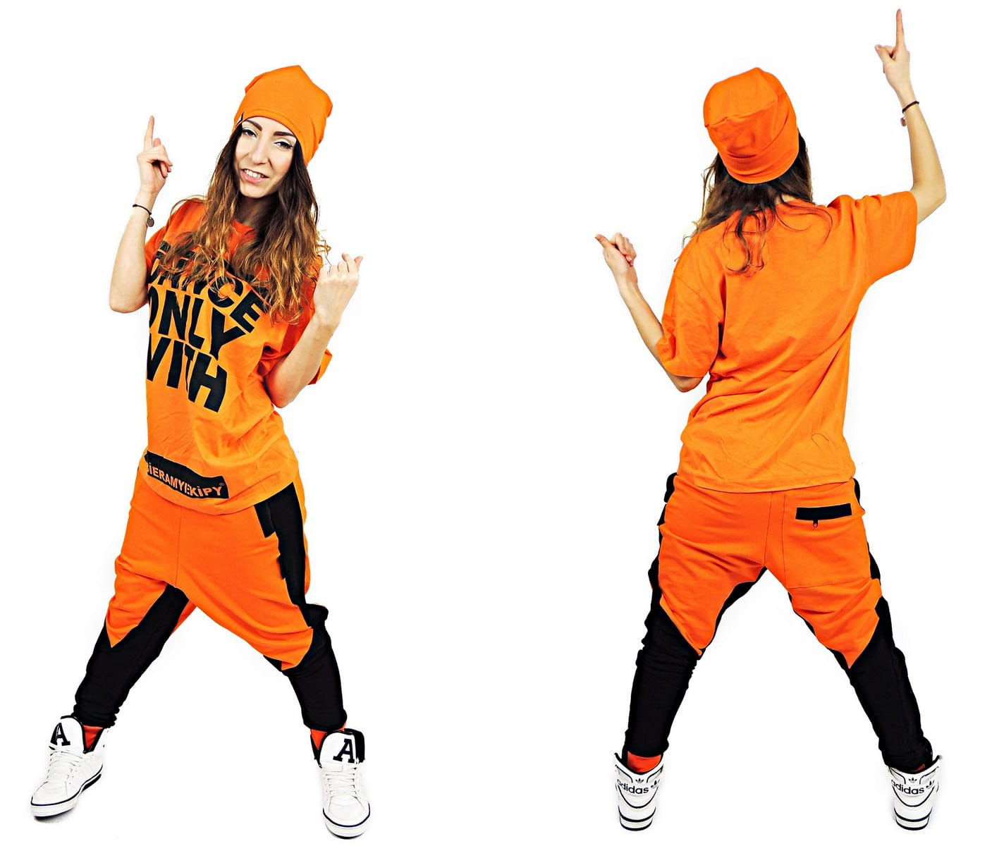 Spodnie dresowe dla całego zespołu - spodnie wykonane z bardzo wysokiej jakości materiału - 96% Bawełna / 4% lycra, co w efekcie daje produkt o bardzo dużych właściwościach rozciągających. Spodnie z obniżonym krokiem. Genialny krój, świetny fason i modne połączenia kolorystyczne. Idealne do tańca oraz na co dzień. Spodnie posiadają 3 kieszenie na zamek błyskawiczny a nogawki zwężające się ku dołowi zakończono ściągaczem. Unikatowe joggery dla tancerzy i grup sportowych.